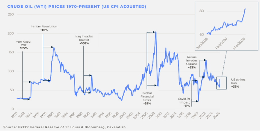 As discussed above there is a chance, certainly if there is a ‘positive’ outcome, that the oil price will fall back to pre-conflict levels or even lower, especially if there is a more pro-Western outcome.