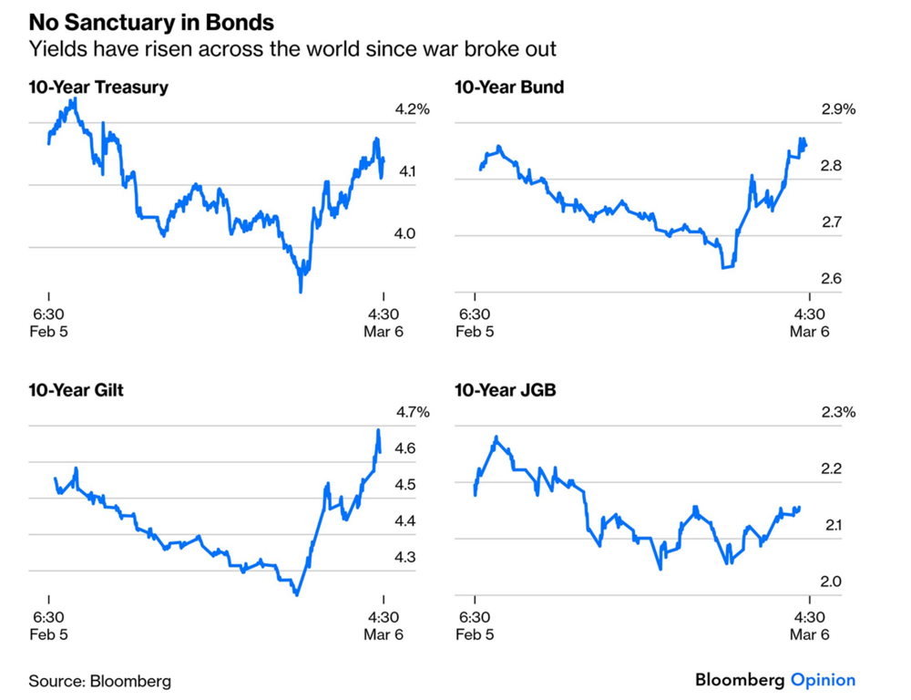 Without diminishing the humanitarian cost of this conflict, from a market perspective the dominant driver of sentiment remains the oil price. The market is following the playbook from the Russian invasion of Ukraine when it probably underestimated the inflationary impact. So given even the recent memory of an oil price spike and the impact that had on inflation, it’s not surprising that the market is extremely sensitive to an oil shock causing a rate shock, and everything then becomes correlated to oil.