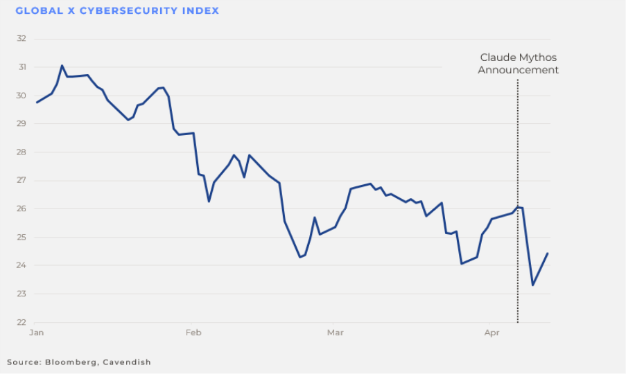 Still, there are market implications. Much like Cowork has come for the productivity-oriented SaaS provider, investors may fear that any model with Mythos’ level of cybersecurity capability could represent a serious disruption to that market too. If it is ever released more broadly, a system able not merely to assist security professionals but to carry out sophisticated cyber tasks, including exploiting serious vulnerabilities in major operating systems, could lead to dramatic price moves elsewhere.