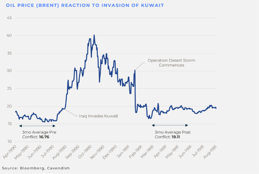 But what is so interesting, as can be seen on the chart, is how quickly the oil price fell after the start of the liberation of Kuwait, and even when it was apparent that Kuwaiti supply would be lost for ‘years’…