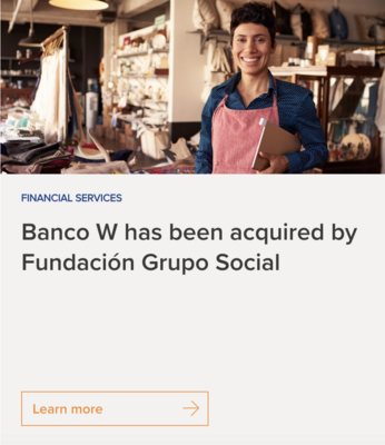 Banco W was already a strong performer and had shown resilience during COVID. However, we wanted to scale the bank and that required significant investment and additional expertise. In Fundación Grupo Social, a respected, 100-year-old social financial holding, we found a strategic partner that shared our values and could bring complementary capabilities and experience.